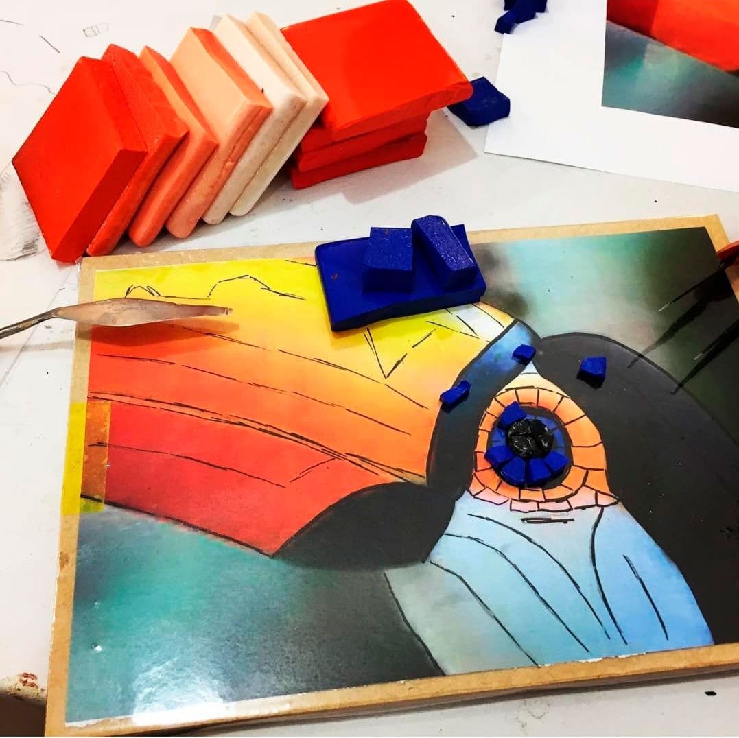 Aqui, celebramos a criatividade e a dedicação de quem escolheu mergulhar no universo do mosaico. Cada obra exposta nesta galeria é o resultado de um processo único de aprendizado, onde a técnica tradicional italiana encontra a expressão pessoal de cada aluno.